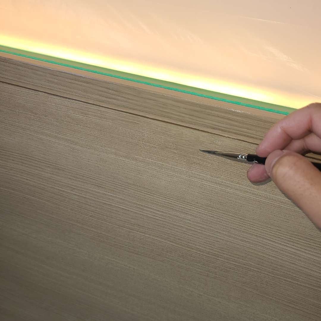 絶対に汚してはならない、養生も慎重に塗料も垂らしてはならない。
