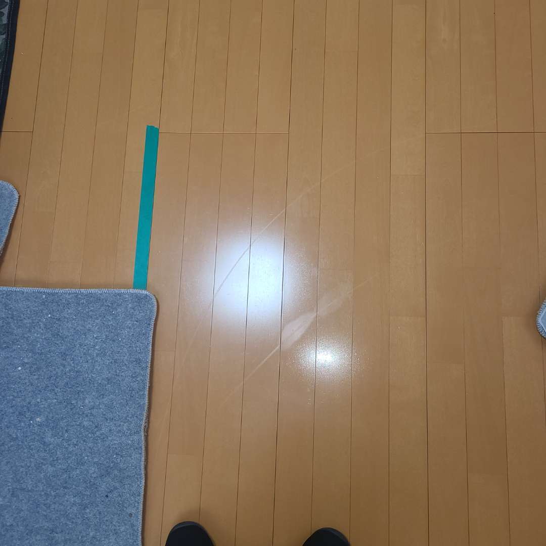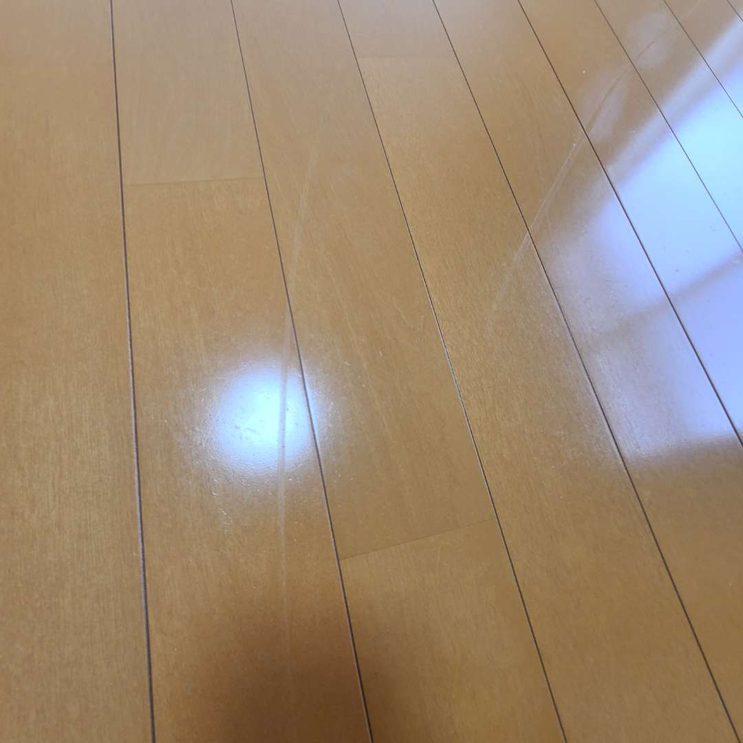 深くはないですが2本線で何枚にも跨がってます、近年ではワックスの入っている床はもう年代物扱いとなりつつあります。
