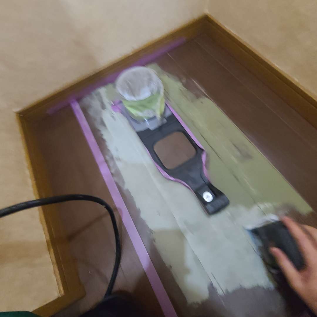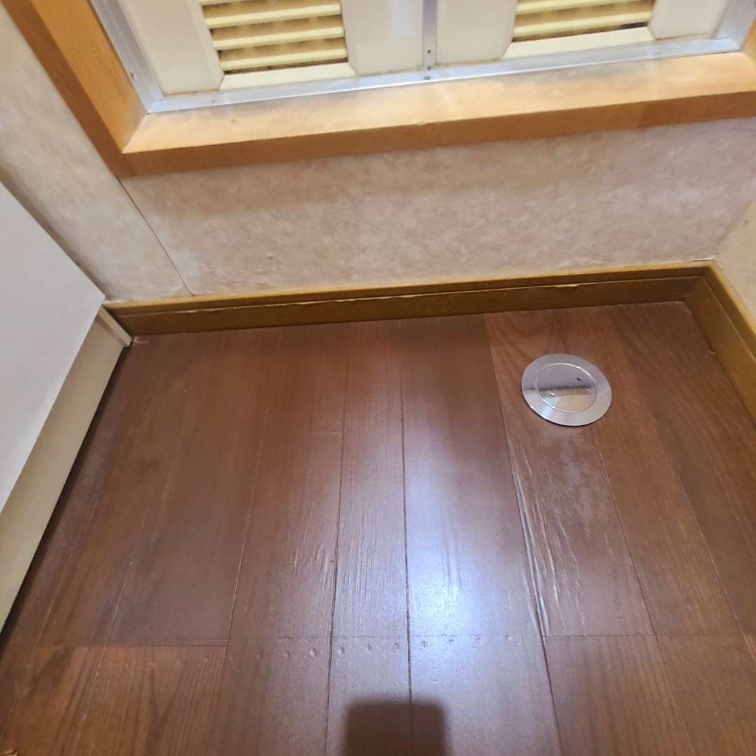 野辺地町アパート床劣化補修になります、古い賃貸の水回りにありがちな現象です。